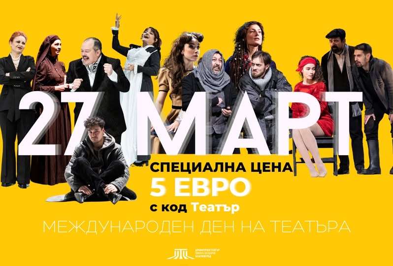 Честит празник на всички, които живеят с театъра – на актьорите, режисьорите, сценографите, драматурзите, композиторите, техническите екипи, администрацията, на всички колеги зад сцената и пред нея, които с труд, талант и всеотдайност превръщат театъра в живо изкуство.